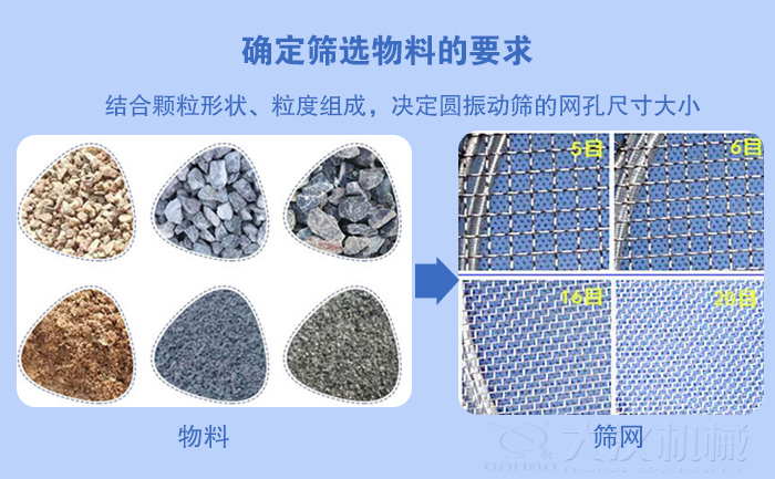 圓振動篩一般采用的是干式篩分,在挑選圓振動篩型號時,需要結合顆粒形狀、粒度組成,這些將決定了圓振動篩的網孔尺寸大小。