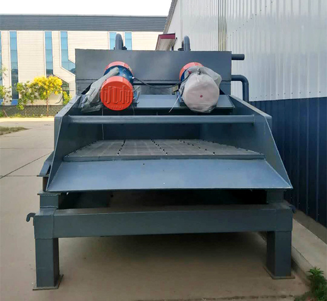 脫水篩由篩箱、支承裝置、電機支架、振動器、萬向傳動軸、膠帶聯軸器、電機等部件組成。